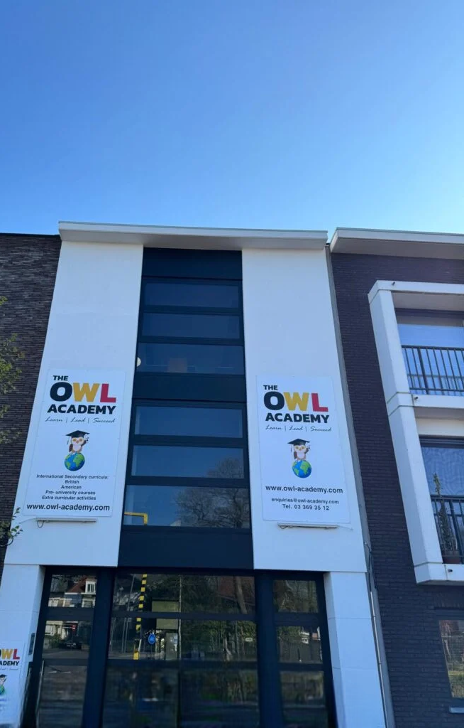 In short, Owl Academy is not an online school. It is a campus-based international school in Antwerp, offering fully onsite elementary education and a secondary programme that blends in-person teaching with carefully integrated online learning to give students the best of both worlds.